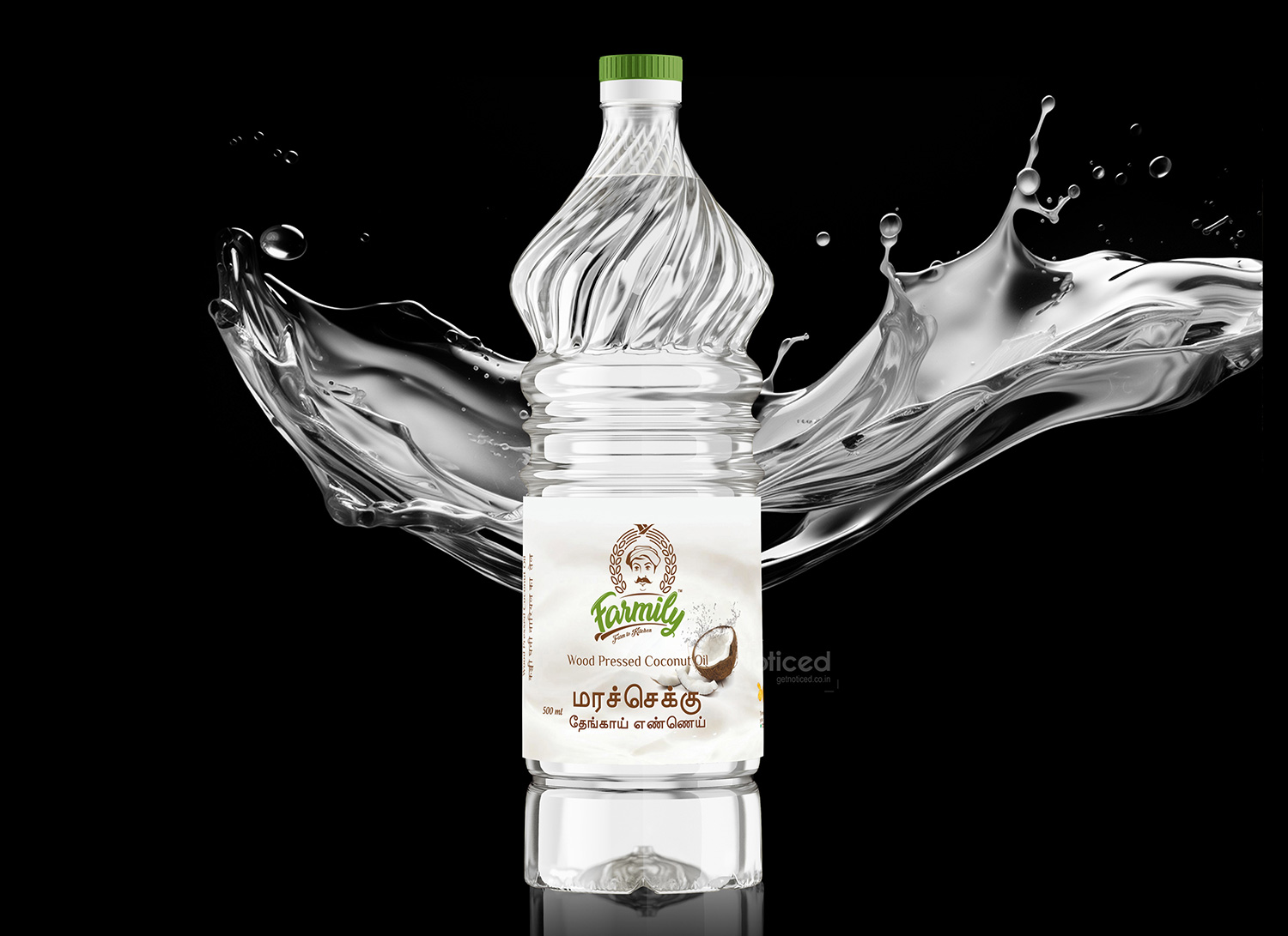 After the success of designing the Farmily brand logo, Get Noticed Creative Studio was entrusted with creating the bottle label design for their range of wood pressed oils, including gingelly oil, groundnut oil, and coconut oil. Our mission was to create packaging that reflects the purity, authenticity, and premium quality of these natural oils, while appealing to health-conscious consumers.