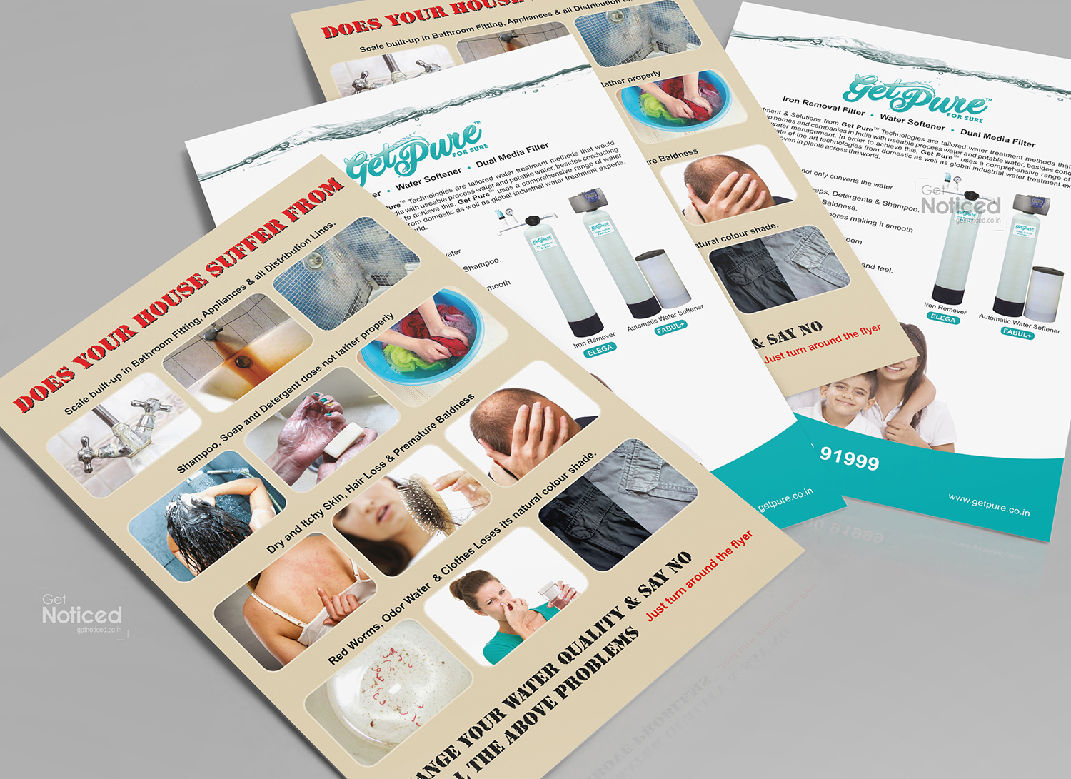 Flyer Design for Get Pure – A Clear and Reliable Water Treatment Service Pamphlet